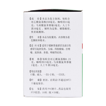 • 盖克 氨咖黄敏胶囊10粒/板感冒发烧头痛咽痛流鼻涕打喷嚏四肢酸痛 【10粒/板*50板】